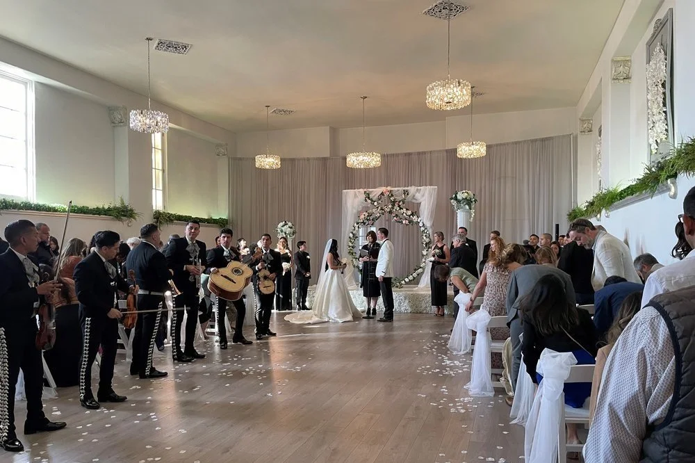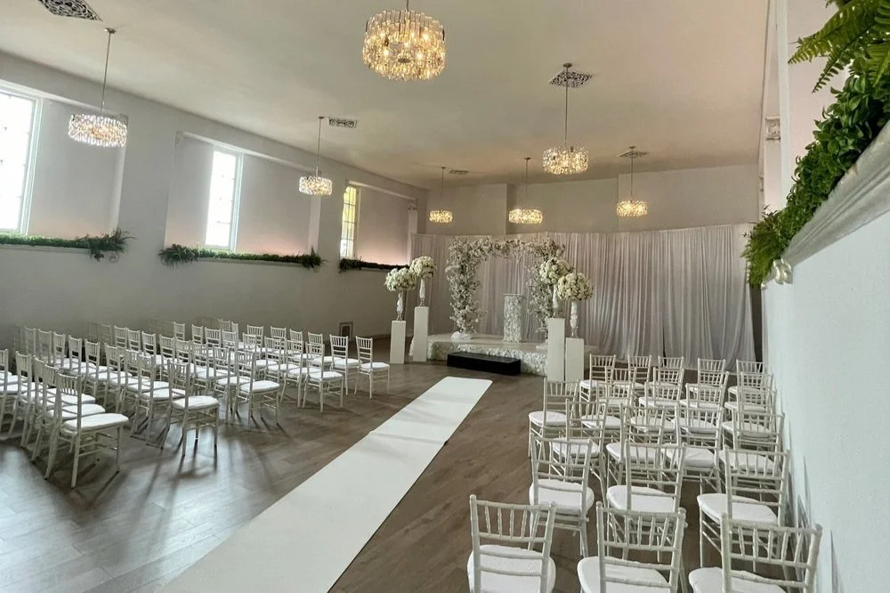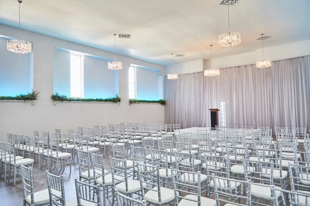 Celebrate the big moment with elegance in our onsite wedding chapel. Seat 100 of your closest loved ones in our classic white chairs under high ceilings and tie the knot.